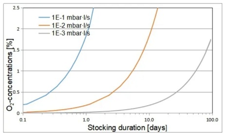 图2:泄漏率、存储时间与包装内氧气含量关系