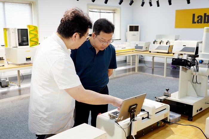 访问团首先参观了新品展厅,重点观摩了Labthink*新研发的包装检测仪器系列,通过陈曦先生专(分隔)业而详尽的介绍,他们对Labthink在技术创新与产品研发方面的投入与成果有了直观认识。在二楼CNAS实验室,严谨的检测流程和先进的设备让来宾们印象深刻。访问团详细了解实验室的检测能力、检测流程标准化建设情况以及在保障数据准确性方面所做出的努力,对Labthink在实验室建设与管理方面的专(分隔)业水准给予了高度评价。